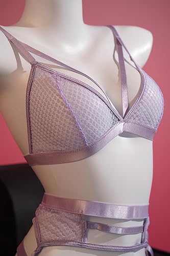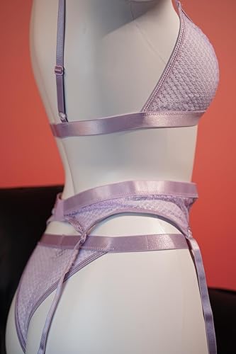 Wluxwater women's sexy lingerie with garters and matching bra and panty lingerie sets 5 Piece. Purple.